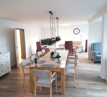 In der Wohngemeinschaft kann der Alltag gemeinschaftlich erlebt werden – ohne den Charakter eines Heims. Ob in geselliger Runde im Gemeinschaftsraum oder zurückgezogen im eigenen Zimmer: Jede und jeder kann den Tag so gestalten, wie es guttut. Angehörige bleiben ein wichtiger Teil des Alltags und sind herzlich willkommen.